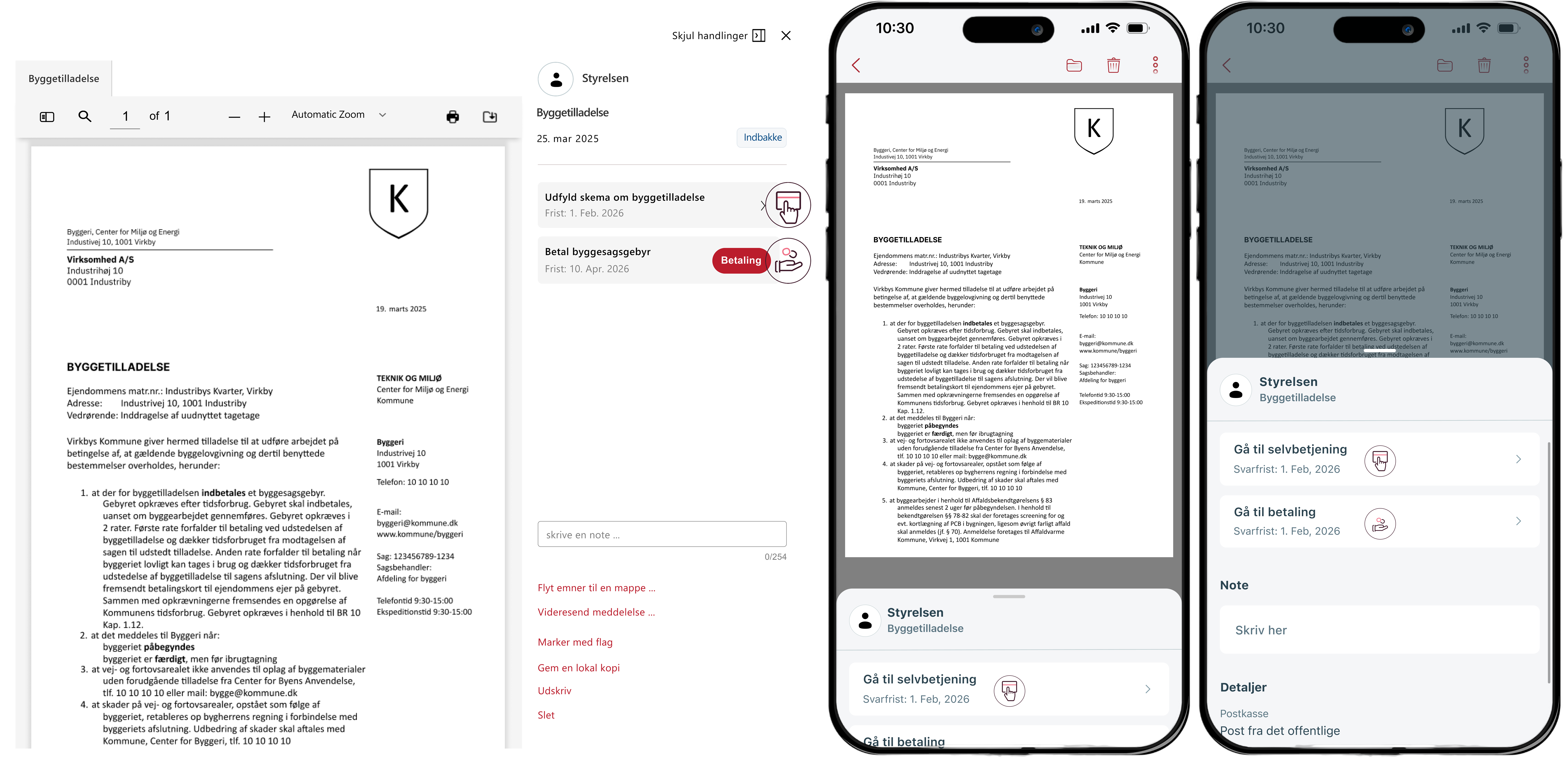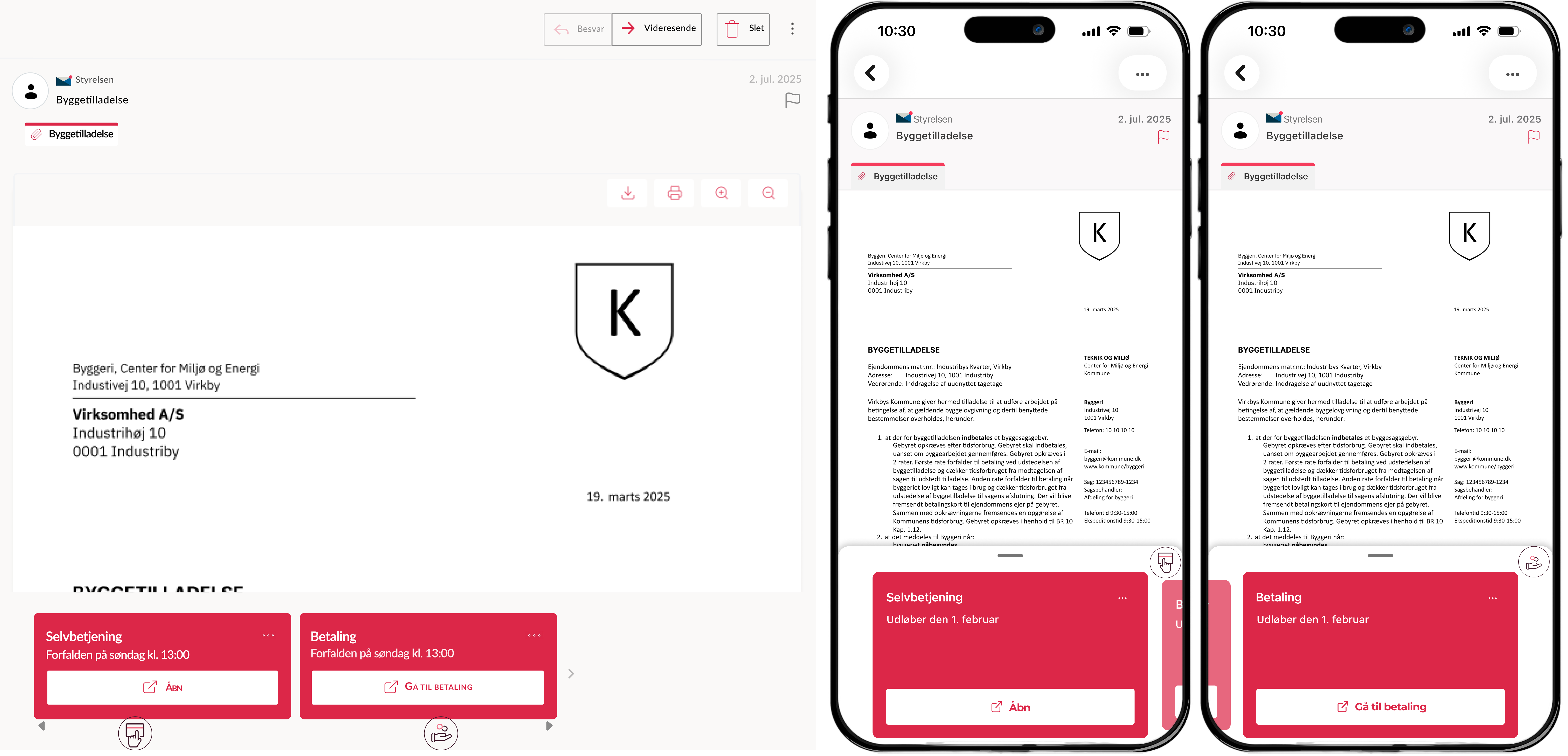 I forbindelse med byggeriet skal virksomheden desuden betale et byggesagsgebyr. For at gøre det lettere for virksomheden og dermed øge sandsynligheden for, at virksomheden betaler til tiden, har kommunen valgt at medsende et link til en betalingsløsning og fremhævet en betalingsfrist.