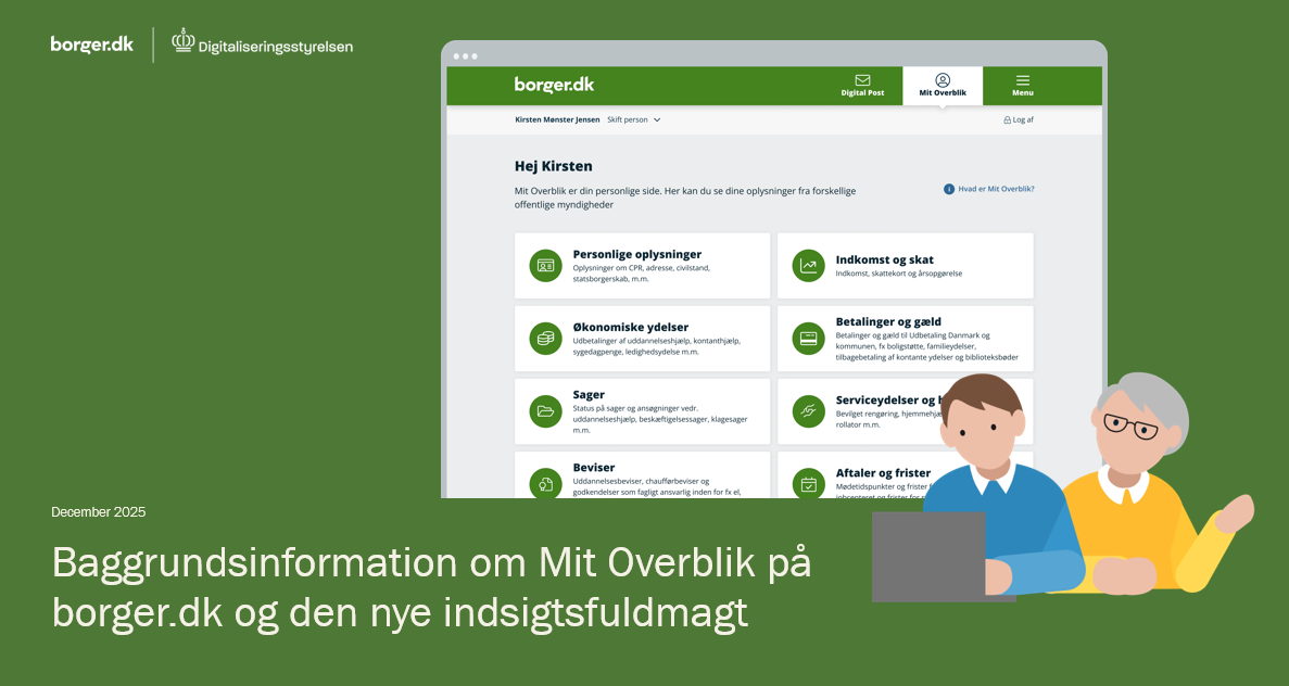 Her på siden kan du hente information om den nye indsigtsfuldmagt til Mit Overblik på borger.dk samt blive klogere på Mit Overblik generelt. Siden er lavet for at klæde medarbejdere på til mødet med borgerne. Det meste af materialet herunder er altså til intern brug, men der er også materiale, som kan udleveres til borgere.
