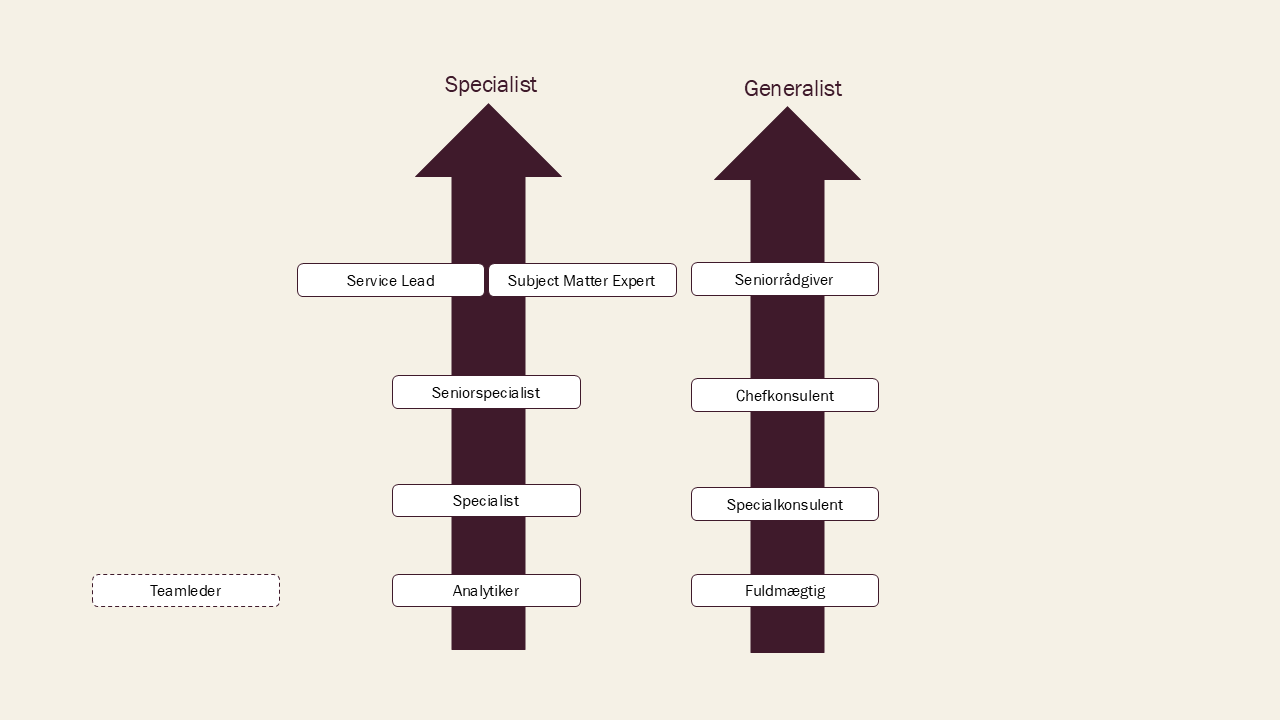 Vi har mange forskellige kompetencer og fagområder på tværs af styrelsen, og karrierevejene skal understøtte den løbende dialog om din udvikling, som du har med din personaleleder.