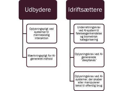 AI-forordningen stiller særlige krav til gennemsigtighed for udbydere og idriftsættere af visse AI-systemer.